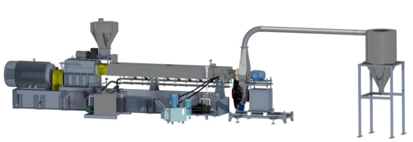 1、占地面積小,主機長寬高為1600X1350X1650mm,帶有移動腳輪。 2、集成連續(xù)密煉與雙螺桿的優(yōu)勢特點,連續(xù)式擠出,方便各種研發(fā)測試使用。 3、能耗低,裝機裝機功率22KW,實際操作功耗更低,類似一臺中央空調功率。 4、產量范圍1-10Kg/h,方便少量物料測試,伺服電機喂料驅動更穩(wěn)定精確。 5、一體化設計,電控冷卻系統(tǒng)全部集成,無需額外安裝,接電即用。 6、連續(xù)密煉機可翻轉腔體和雙螺桿快開機頭設計,方便清理及檢查維護。 7、全系統(tǒng)安全連鎖,觸摸屏操作,多處安全停機保護,使用更放心。 8、整機1噸,方便裝卸。
